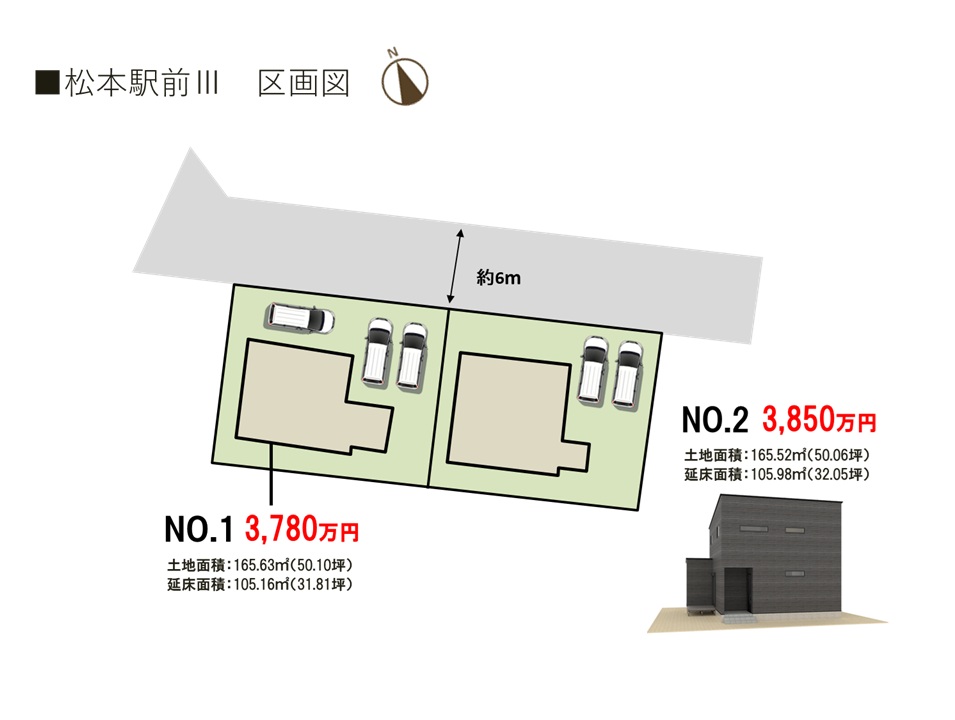 ■トレステージ松本駅前Ⅲ概要 ●所在地/三重県四日市市松本3丁目309番10他●交通/近鉄湯の山線「伊勢松本」駅徒歩約4分●地目/宅地 ●用途地域/第1種住居地域●建ぺい率/60%●容積率/200%●道路幅員/北東側公道幅員(約6.0m) ●下水/個別浄化槽 ●雨水/側溝排水 ●電気・上水道/中部電力、公営水道 ●総区画数/2区画 ●販売戸数/一戸建:2戸 ●土地面積/165.52㎡~165.63㎡ ●建物面積/105.16㎡~105.98㎡ ●販売価格/3,780万円~3,850万円 ●入居時期/相談 ●取引態様/売主