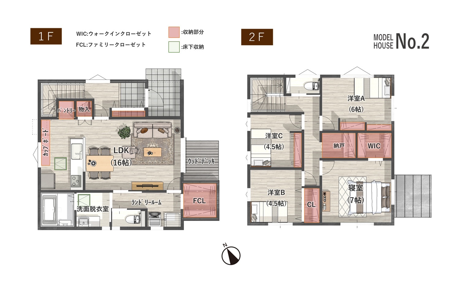 2階にはウォークインクローゼット(WIC)・納戸・各部屋の収納があり、収納力◎