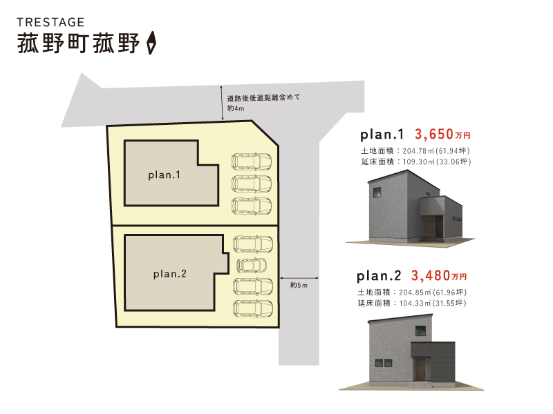 ■トレステージ菰野町菰野概要 ●所在地/三重県三重郡菰野町大字菰野字神田3014-5●交通/近鉄湯の山線「中菰野」駅・・・約650m(徒歩約9分)●地目/宅地 ●用途地域/第1種低層住居専用地域●建ぺい率/60%●容積率/100%●道路幅員/北側幅員公道幅員(約4.0m)東側公道幅員(約5.0m) ●下水/本下水 ●雨水/側溝排水 ●電気・上水道/中部電力(オール電化)、公営水道 ●総区画数/2区画 ●販売戸数/一戸建:2戸 ●土地面積/204.78㎡~204.85㎡●建物面積/104.33㎡~109.30㎡ ●販売価格/3,480万円~3,650万円 ●入居時期/相談 ●取引態様/売主