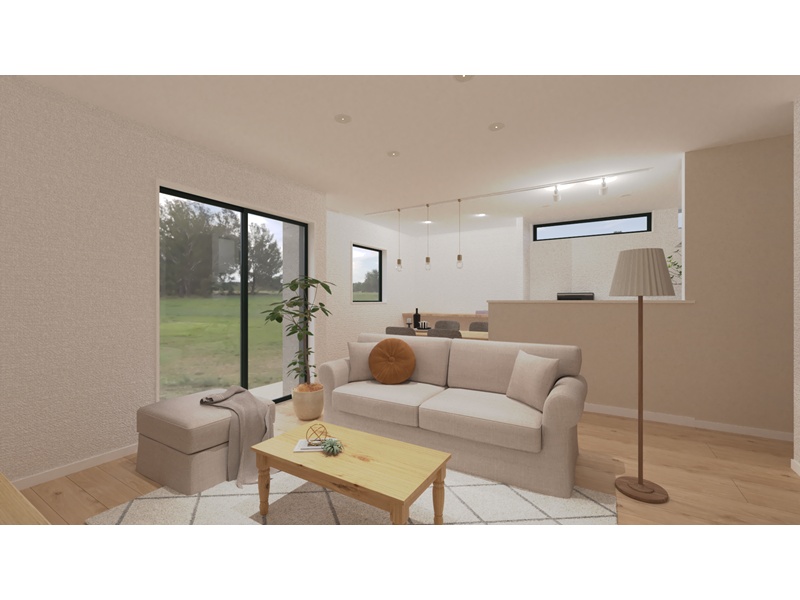 約19.9帖の広々としたLDKは、キッチンからリビングやダイニングを見渡せる開放的な空間。家事をしながらでも家族との会話が生まれる、住まいの中心となる場所です。