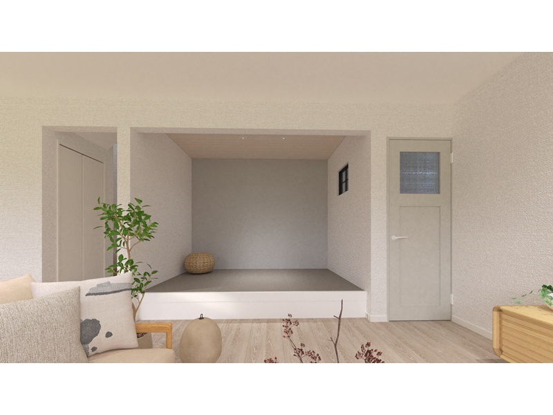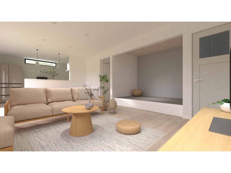 LDKの一角には3帖のタタミコーナーを設けました。お子さまの遊び場やお昼寝スペースとして使える、家族のくつろぎ空間です。
