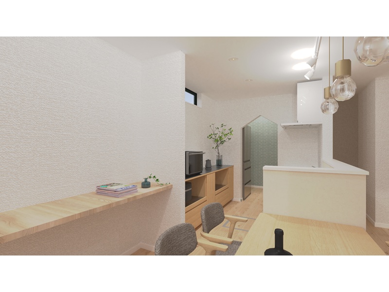LDKの一角にはカウンターを設けました。お子さまの勉強スペースやワークスペースなど、多目的に使える便利な空間です。