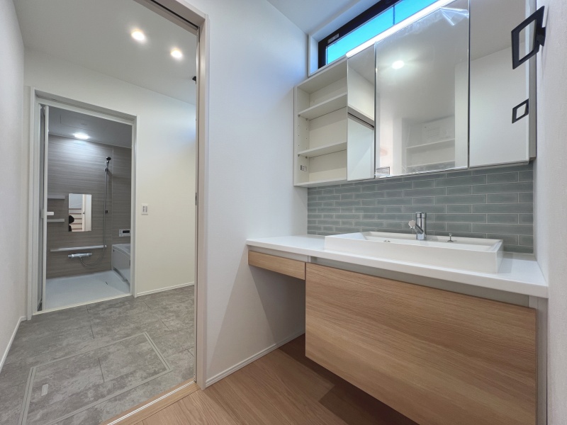 - 脱衣室・洗面・浴室が一直線につながり、毎日の家事もスムーズに。洗濯動線が快適です。