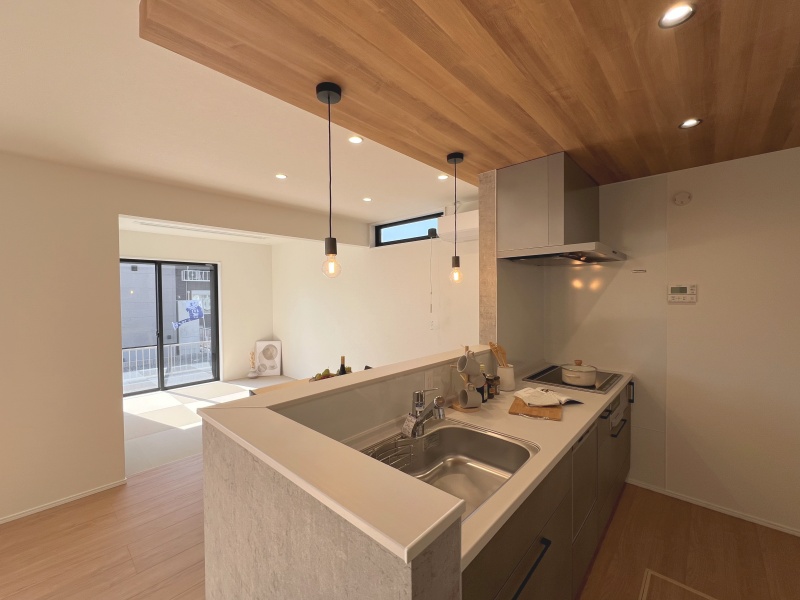 - 19.8帖のLDKに隣接する4.5帖和室。遊び場やお昼寝スペースにもぴったり。目が届きやすく、安心して多用途に使えます。