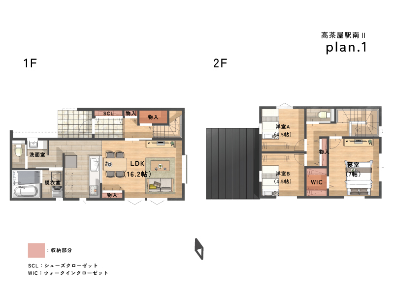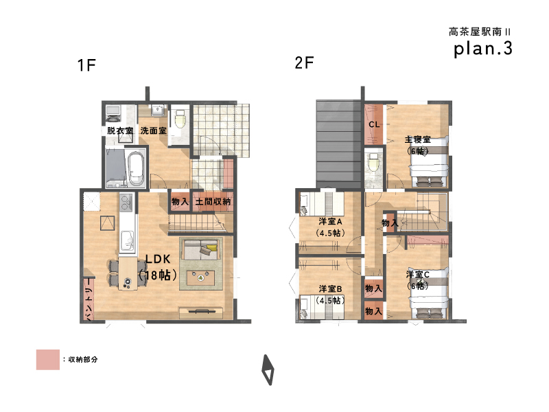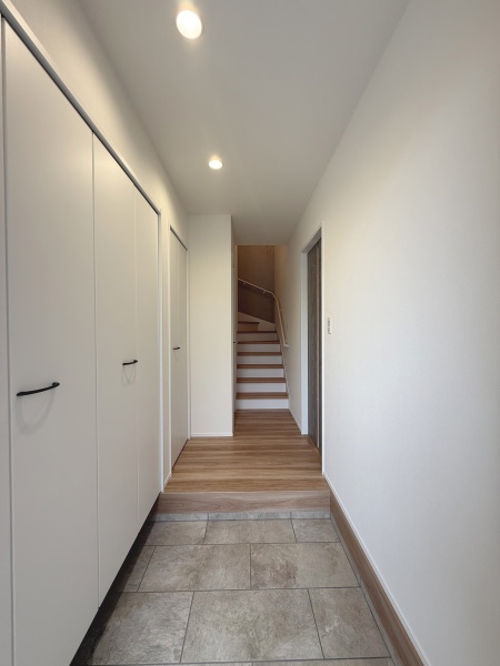 - 各所に収納スペースをバランスよく配置し、日用品や衣類も整理しやすい設計。生活感を抑えた空間づくりが可能です。