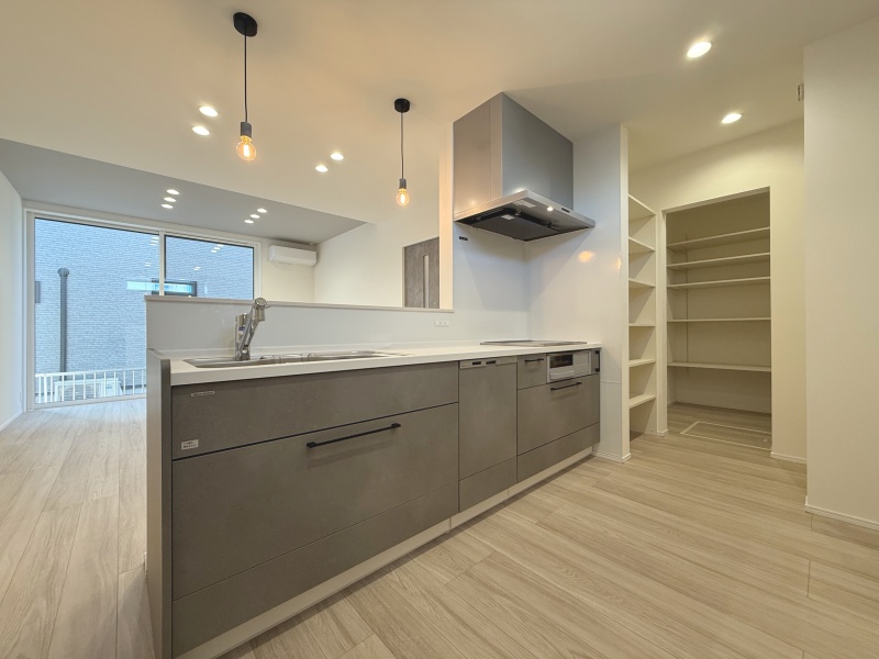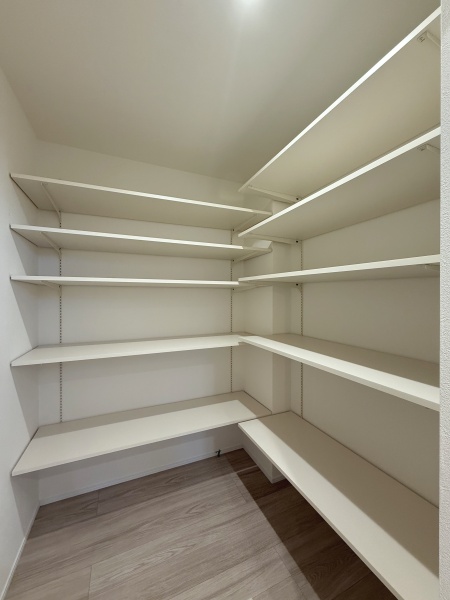 キッチン横にパントリーを設けることで、食品ストックや日用品をまとめて収納可能。