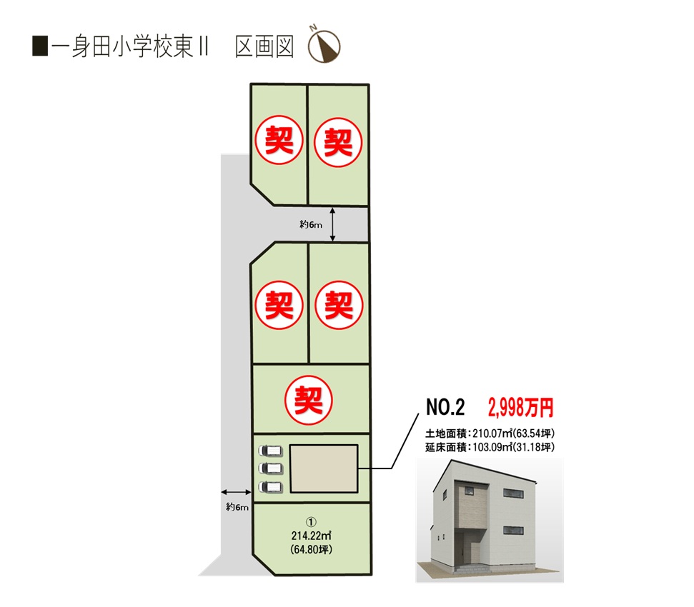 ■トレステージ一身田小学校東Ⅱ概要 ●所在地/三重県津市一身田大古曽字深田43-5他 ●交通/近鉄名古屋線「高田本山」駅徒歩約14分●地目/宅地 ●用途地域/第一種低層住居専用地域●建ぺい率/60%●容積率/100%●道路幅員/西側公道幅員(約6.0m) ●下水/個別浄化槽 ●雨水/側溝排水 ●電気・上水道/中部電力(オール電化)、公営水道 ●総区画数/7区画 ●販売戸数/一戸建:1戸 ●土地面積/209.99㎡~210.07㎡●建物面積/103.09㎡●販売価格/2,998万円●入居時期/即入居可 ●取引態様/売主